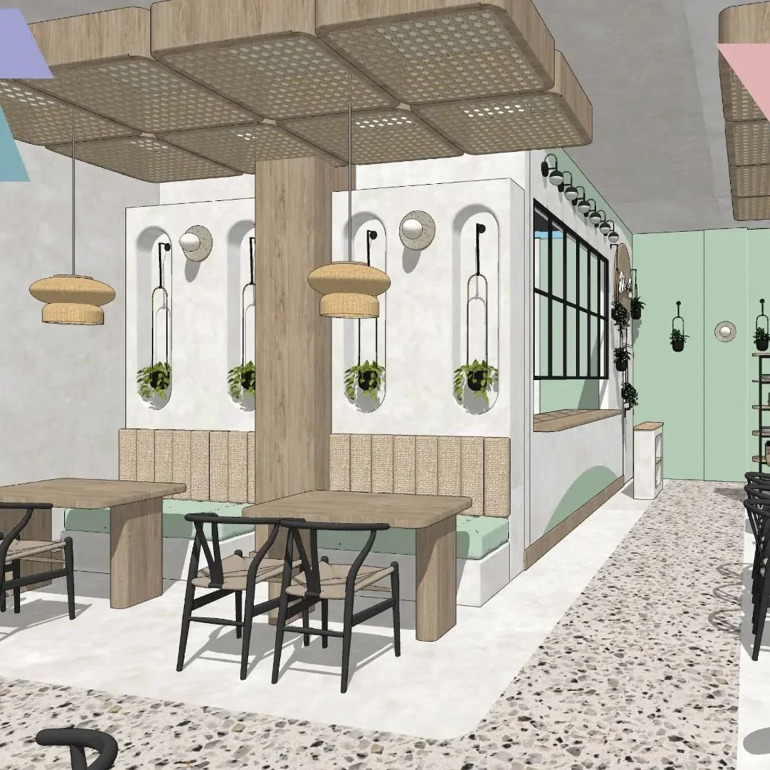 This full renovation project for a bar-restaurant began with conceptual sketches to define the spatial idea and user experience, evolving into renders that showcase the final design outcome.